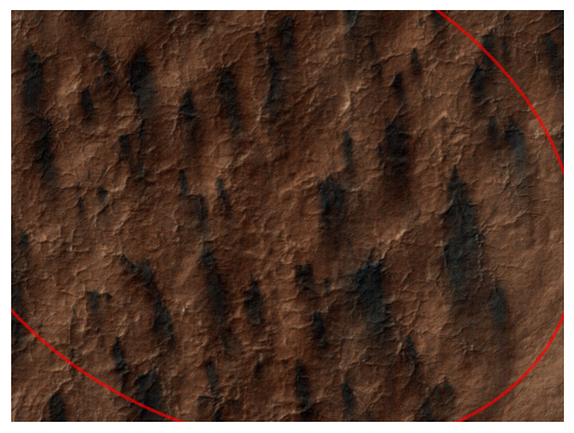 fans = get_fans_for_tile('80s', 'v1') # v3 for thisget_blotches_for_tile('80s', 'v3')| obsid | marking_id | angle | tile_id | image_x | image_y | n_votes | radius_1 | radius_2 | vote_ratio | ... | l_s | map_scale | north_azimuth | BodyFixedCoordinateX | BodyFixedCoordinateY | BodyFixedCoordinateZ | PlanetocentricLatitude | PlanetographicLatitude | Longitude | MY | |