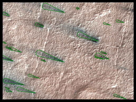 fans = io.get_fans_for_tile(tid2)fans.head()| marking_id | angle | distance | tile_id | image_x | image_y | n_votes | obsid | spread | version | ... | y_angle | l_s | map_scale | north_azimuth | BodyFixedCoordinateX | BodyFixedCoordinateY | BodyFixedCoordinateZ | PlanetocentricLatitude | PlanetographicLatitude | Longitude | |