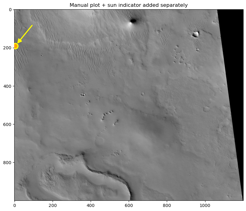 plt.show()Text(0.5, 1.0, 'Manual plot + sun indicator added separately')
