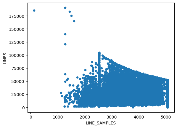 Index files can serve as a good means to get to know to a dataset. Here we look at the stats for the image sizes available. Instead of rows and columns in the PDS lingo they are called LINES and LINE_SAMPLES.